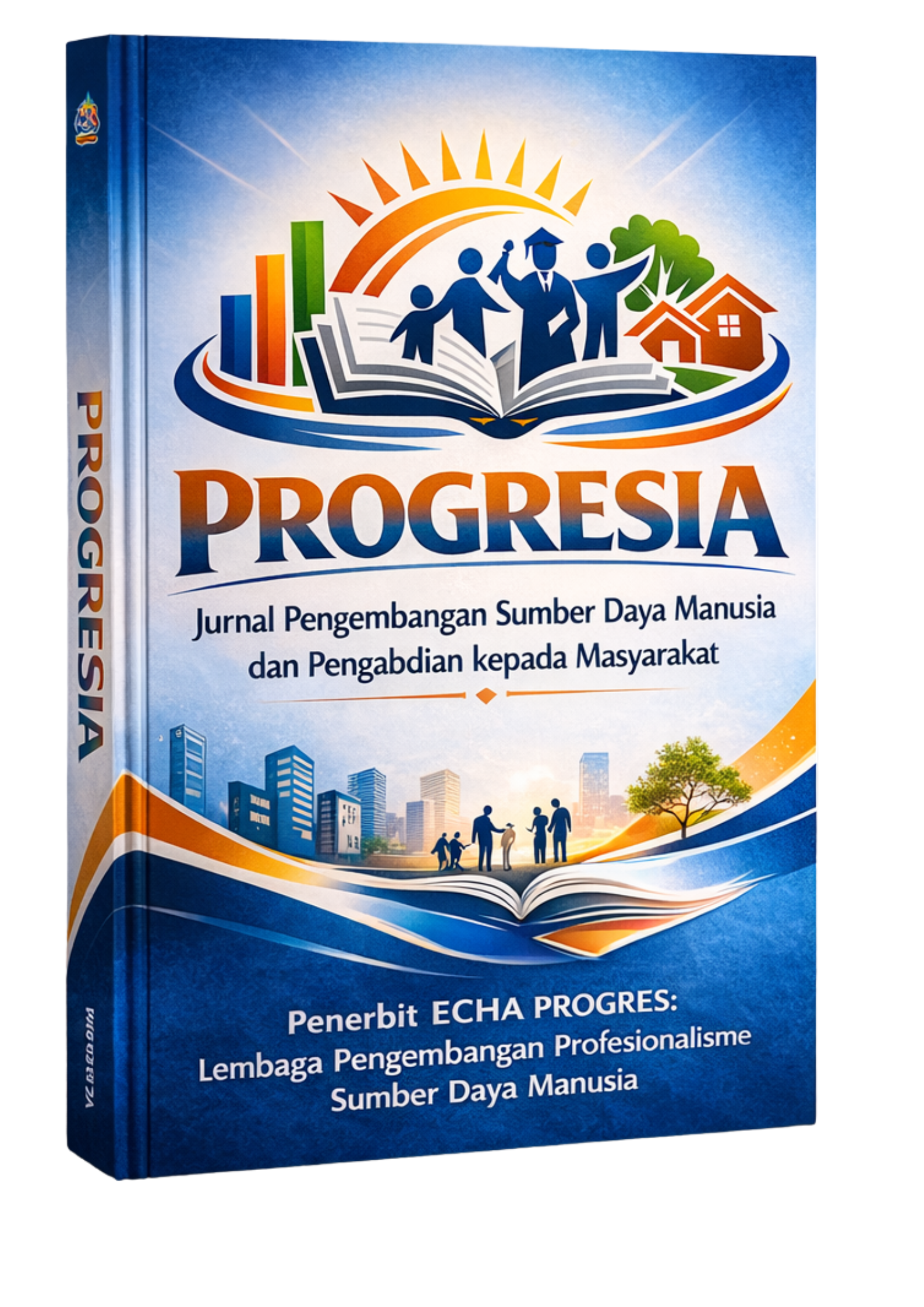 Journal Title : PROGRESIA: Jurnal Pengembangan Sumber Daya Manusia dan Pengabdian kepada Masyarakat Initials : PROGRESIA Frequency : Februari, April, Juni, Agustus, Oktober, Desember E-ISSN : 3047-6178 Chief Editor : Dr. Muhsyanur, M.Pd., M.Psi., M.M. DOI Prefix : 10.67890 Publisher : ECHA PROGRES: Lembaga Pengembangan Profesionalimse SDM Status : Nasional